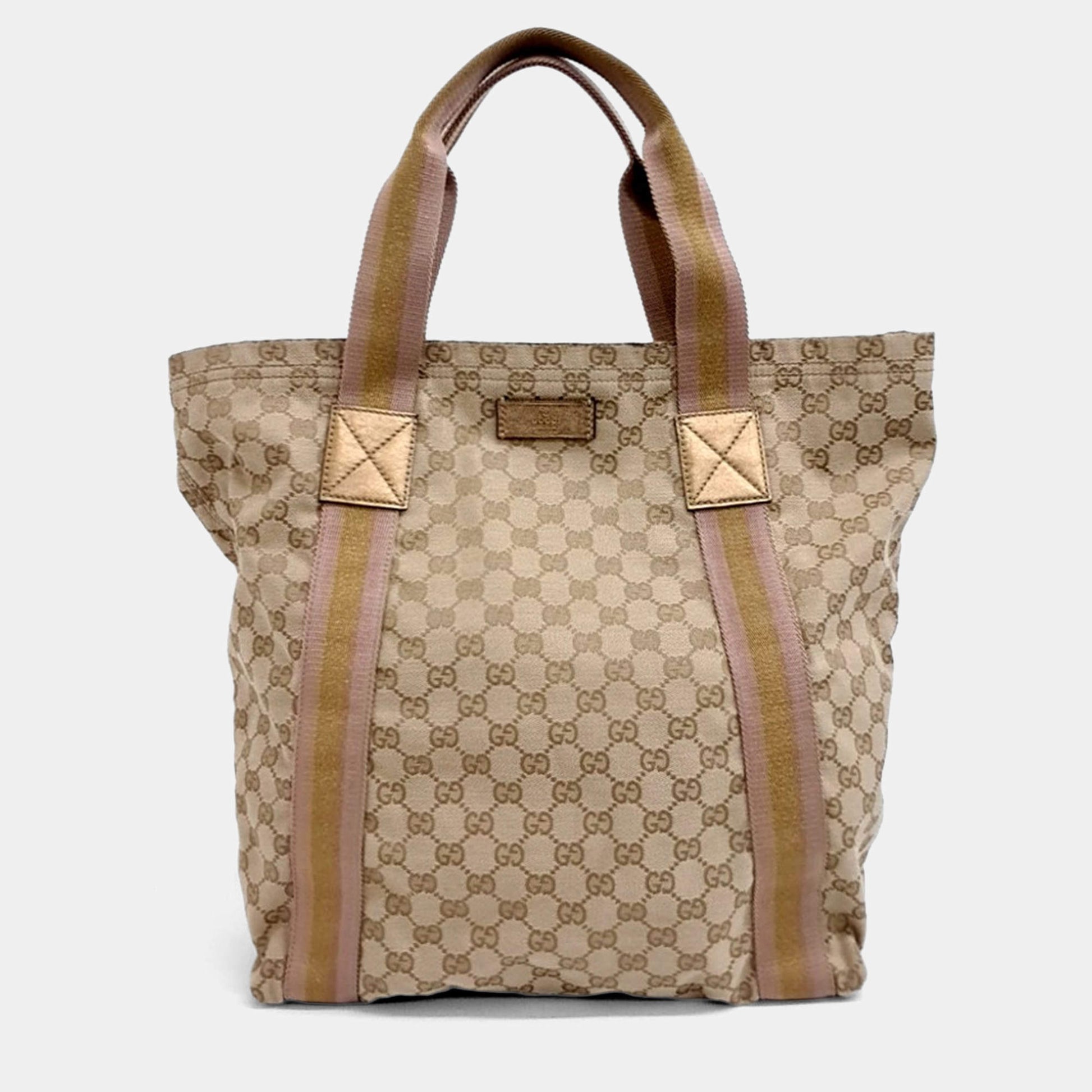 Beige Canvas Tricolour Tote